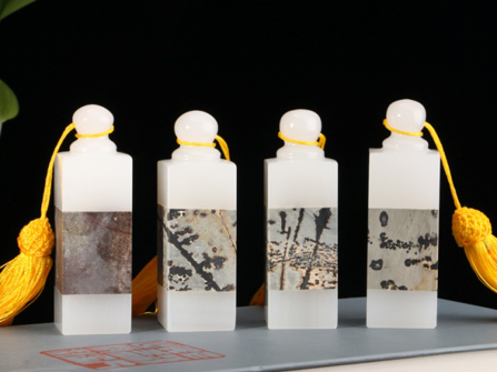 產品參數:印石(3.0*3.0*9.0CM)景德鎮陶瓷盒(直徑8.8CM,高度4.2CM)八寶印泥(30克)