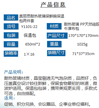 奧麗思耐熱玻璃保鮮碗保溫包兩件套