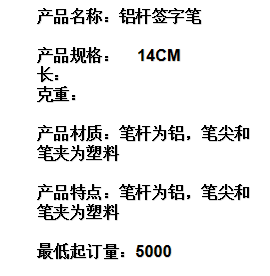 筆(bi)(bi)桿(gan)為鋁,筆(bi)(bi)尖和筆(bi)(bi)夾為塑料