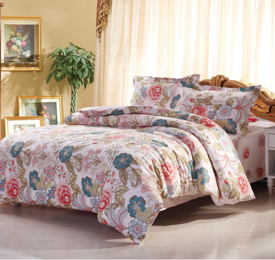 此款套件采用高(gao)密環保活性印(yin)花面料(liao),是目前市(shi)場上最新面料(liao)之一,染整技術為(wei)國外先進且綠色環保的(de)活性印(yin)花技術,色澤亮麗和(he)手感(gan)柔糯的(de)優點,使用后感(gan)覺溫暖舒適,花型炫(xuan)麗舞動,逼真高(gao)貴,實為(wei)性價(jia)比極(ji)高(gao)之床品(pin)。