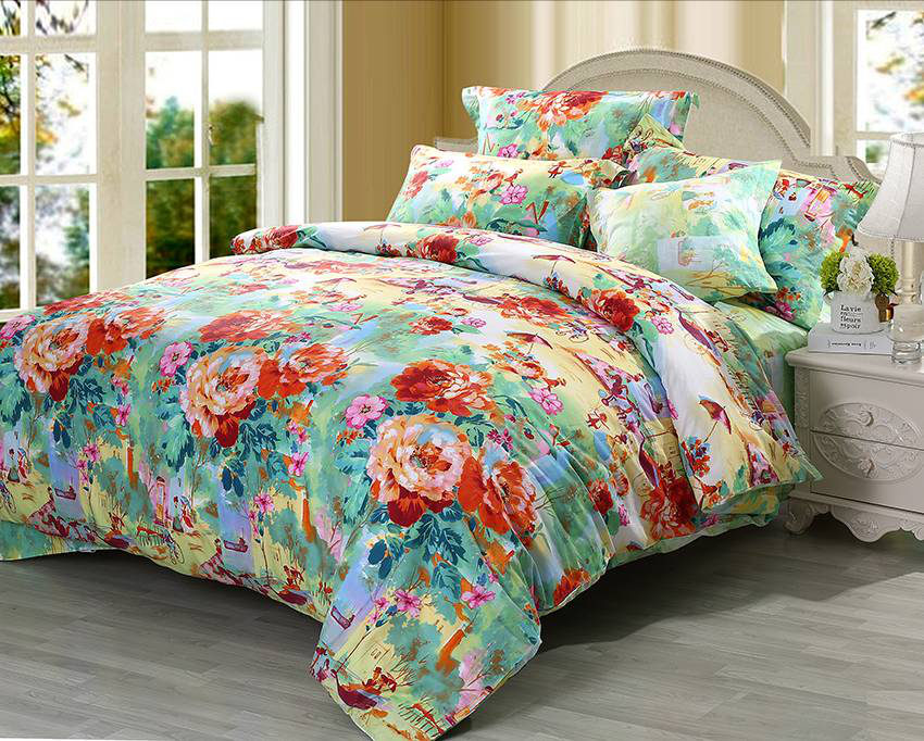 此款套件采用高品質活性印花面料,采取國際先進染整技術,綠色環保的活性印花技術,具有色澤亮麗和手感舒柔的優點,手感柔軟細膩,不起球、不縮水、綠色環保,對人體無刺激,實用后感覺溫暖舒適,是您舒適家居生活的必備良品。