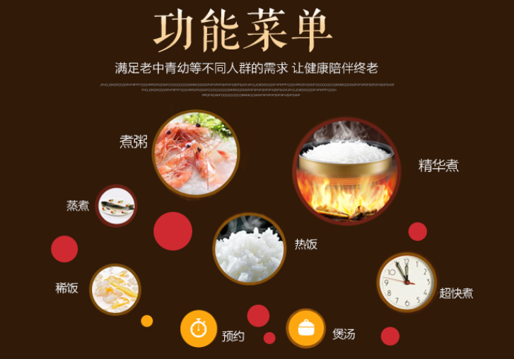 功能:香甜煮、超快煮、煮粥、稀飯、雜糧飯、
