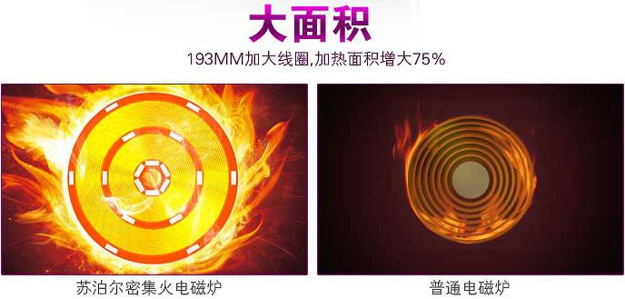 3、大面積:193mm超大線圈盤,加熱面積增加75%