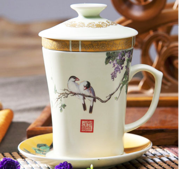 工藝:羊脂玉瓷,貼金箔花紙,做工精細,一絲不茍,表面質感不同以往瓷器的光滑明亮,有如磨砂玻璃般的感覺。儒雅內斂,渾身散發著出凡托俗的高貴氣質。