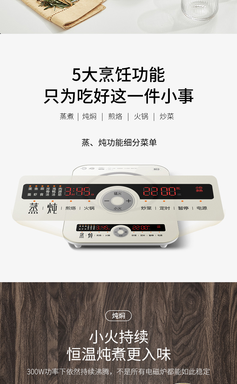 蒸,燉6種食材烹飪功能:內置烹飪曲線