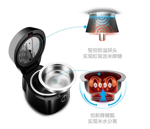 1、創新低糖技術,米水分離,虹吸瀝米,米飯健康又好吃(chi)