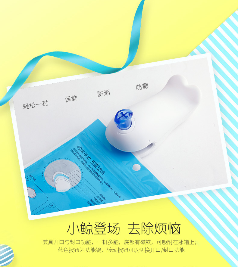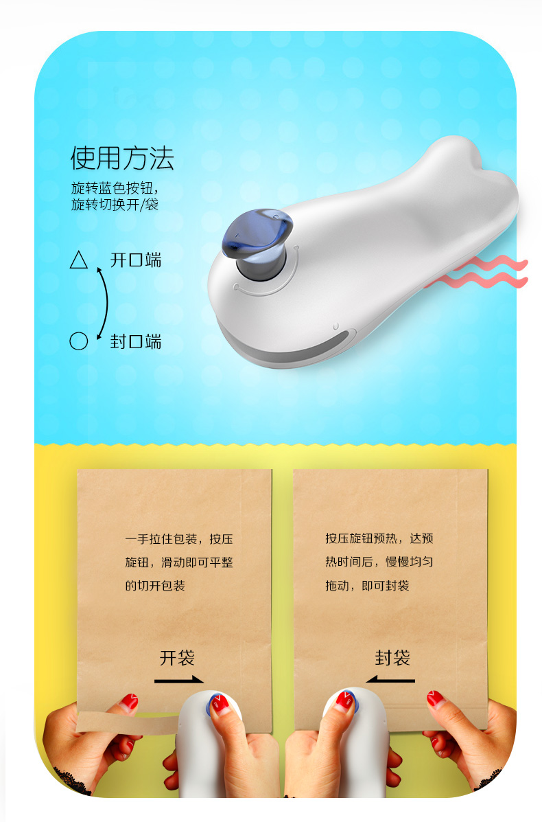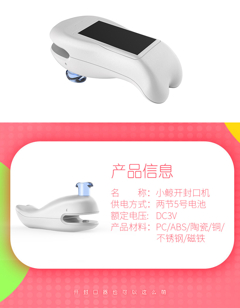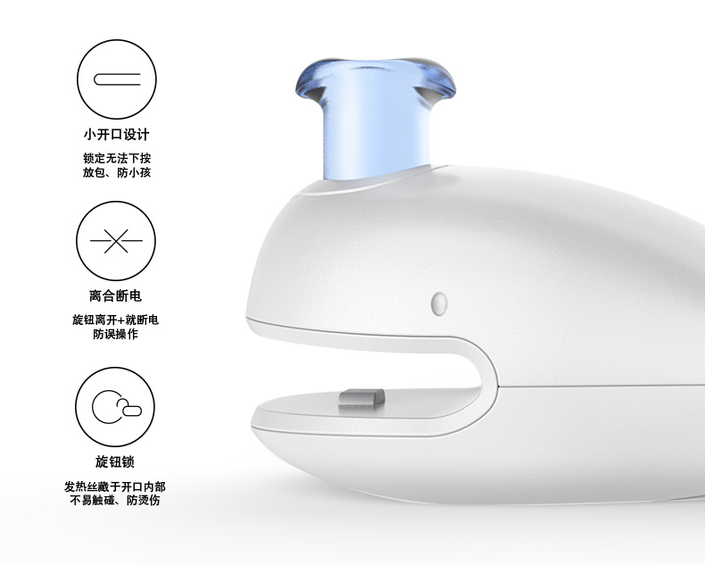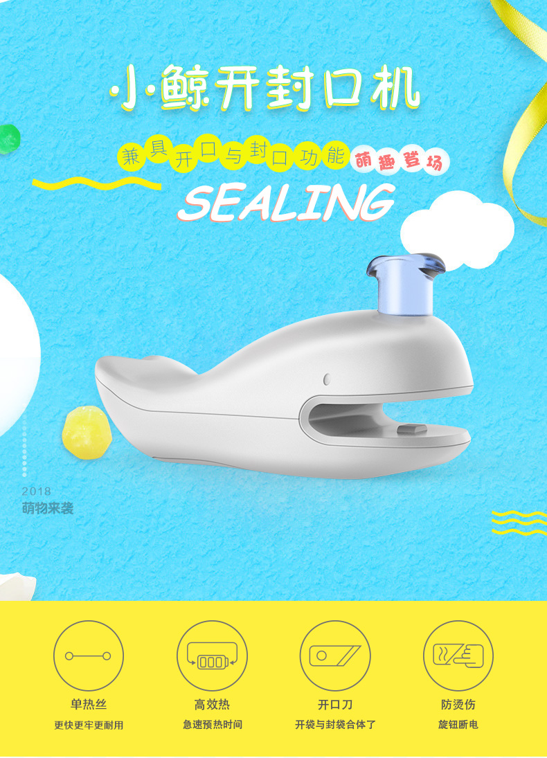 幻響小鯨開(kai)/封口機(ji)(ji),兼具開(kai)口與封口功能(neng),一機(ji)(ji)多能(neng);