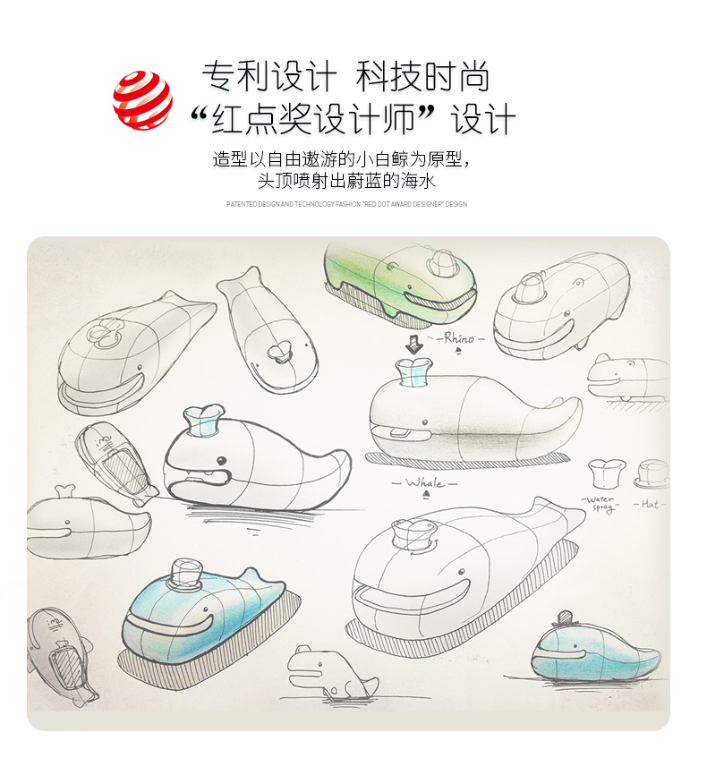 造型以自由遨游的小白鯨為原型,頭頂噴射出蔚藍的海水, ;