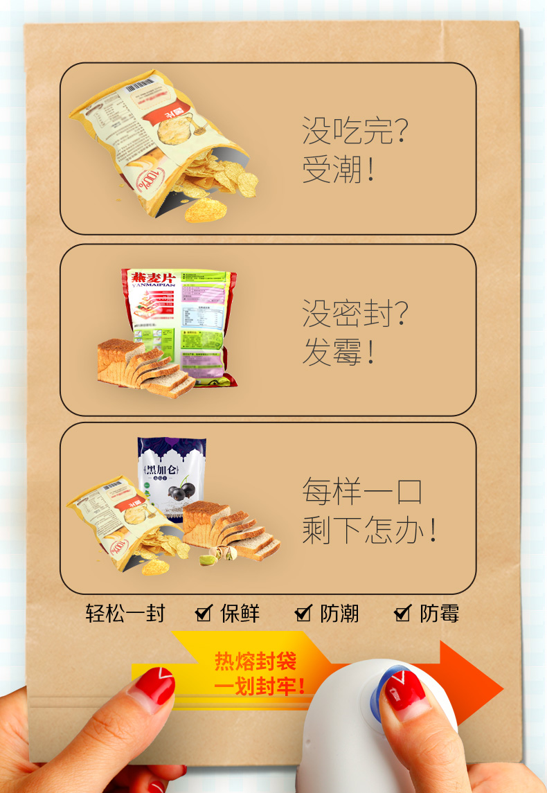 開口功能 :可以輕易打開食品包裝,開口邊緣整齊,方便以后的密封;